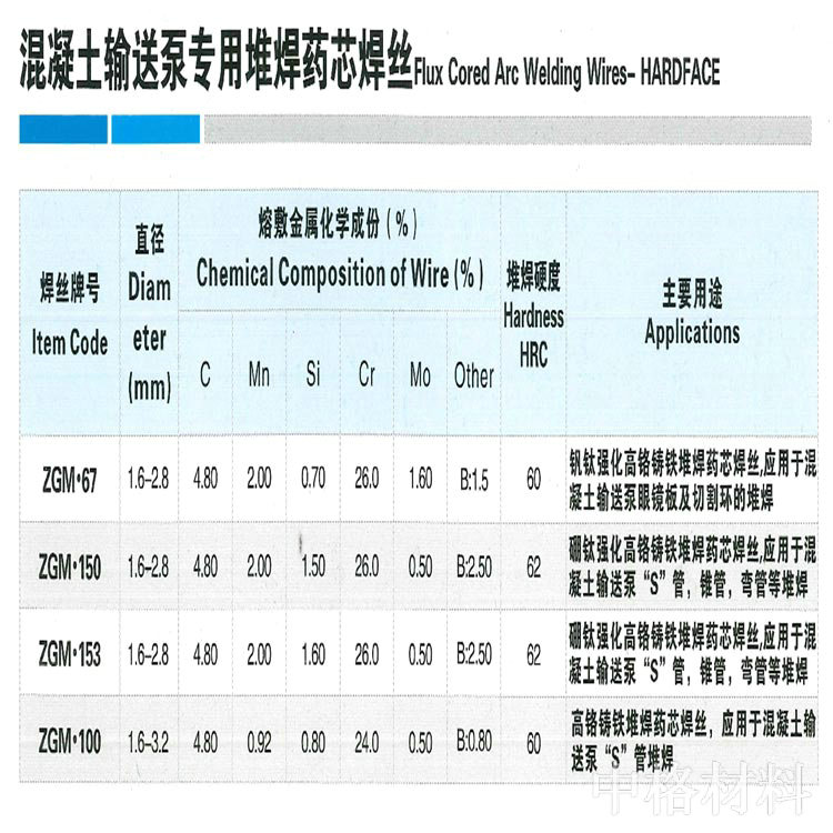 產(chǎn)品分類(lèi):混凝土輸送泵專(zhuān)用堆焊藥芯焊絲