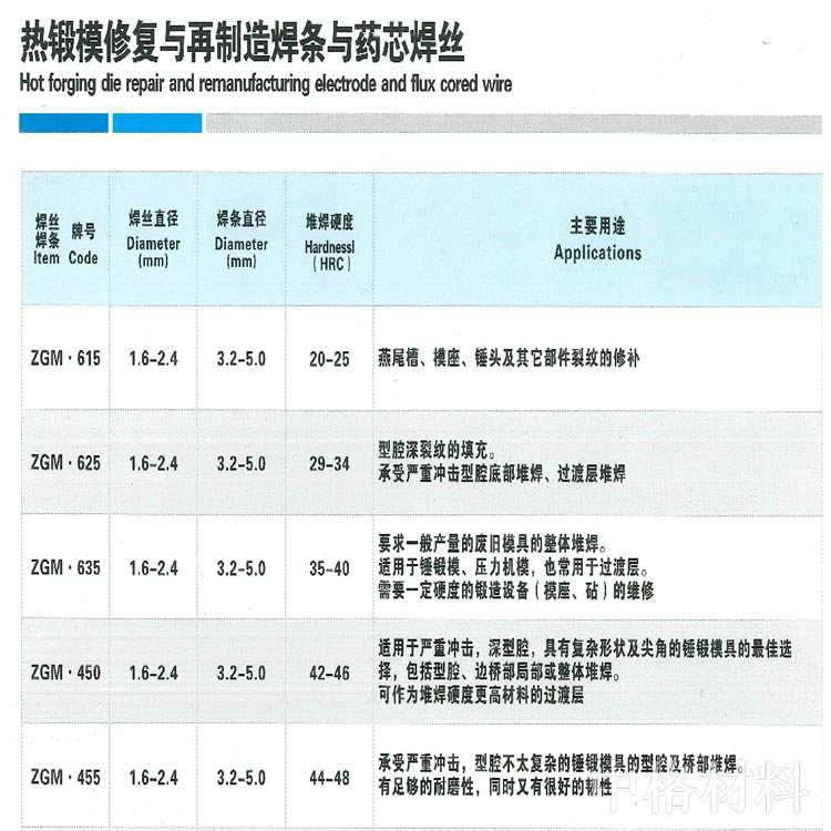 產品分類:熱鍛模修復與再制造焊條與藥芯焊絲