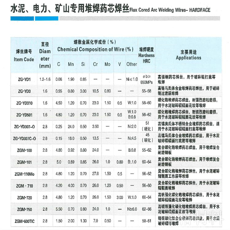 產品分類:水泥、電力、礦山專用堆焊藥芯焊絲