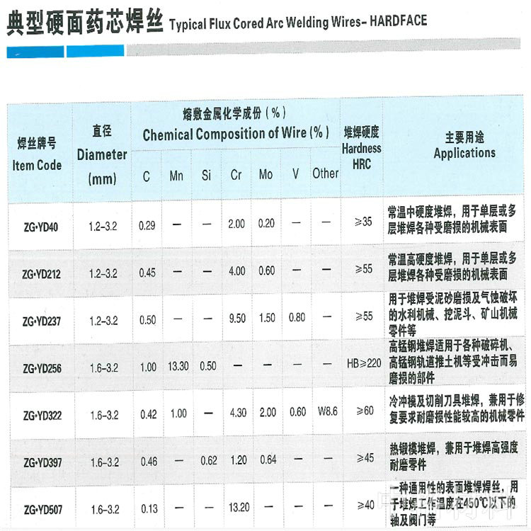 產品分類:典型硬面藥芯焊絲